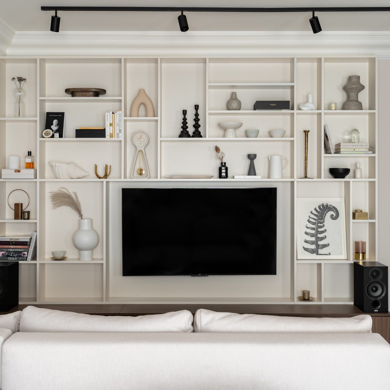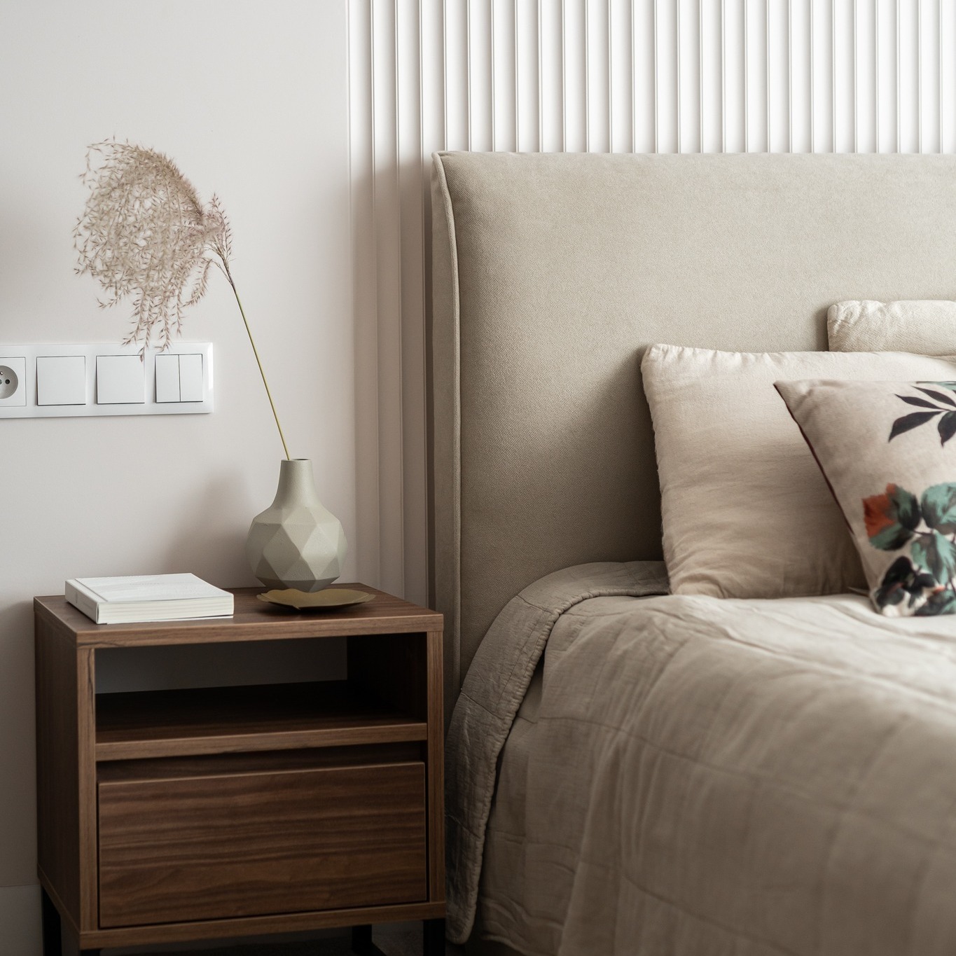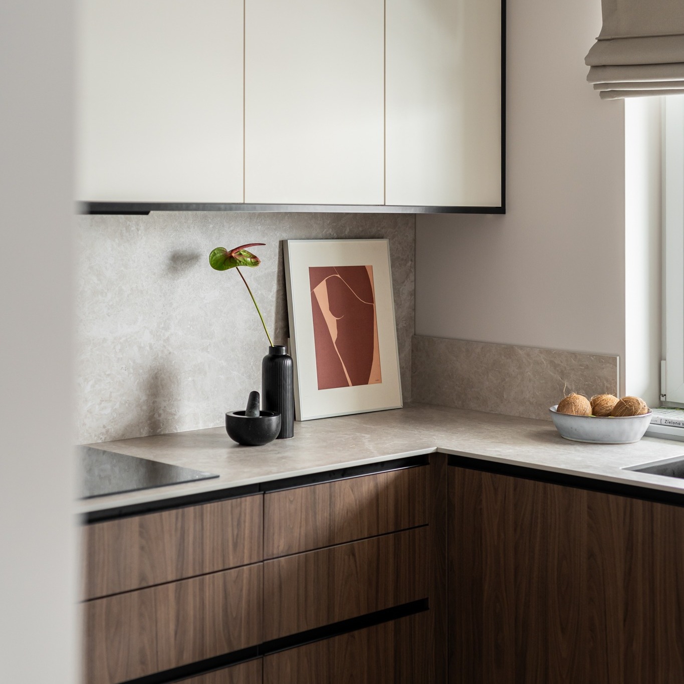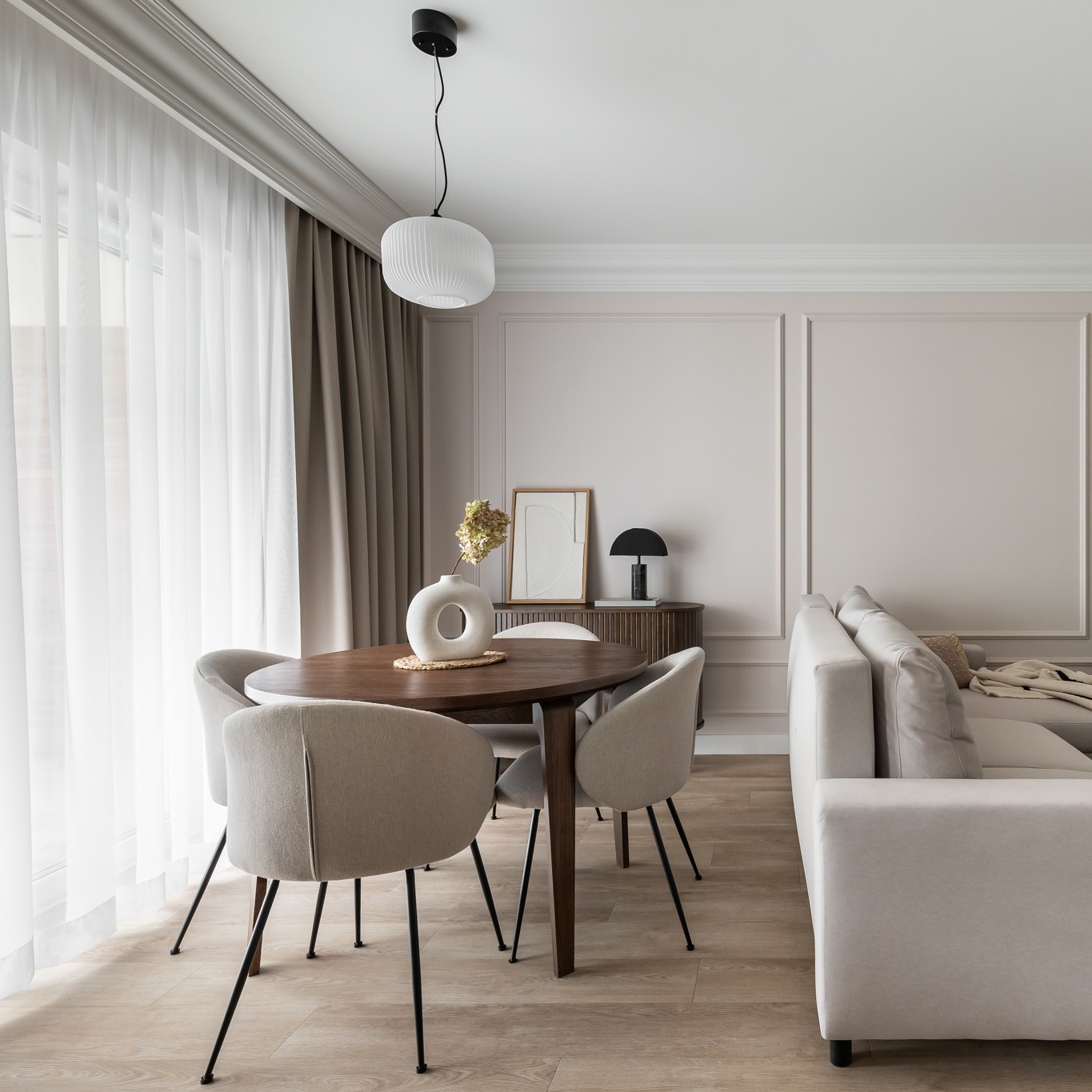 W stylowym wnętrzu na gdańskim osiedlu Perspektywa połączyliśmy elegancję vintage z nowoczesnymi akcentami. Ciepłe odcienie drewna kontrastują tu z bielą i szarościami, tworząc przestrzeń pełną klasy i harmonii.