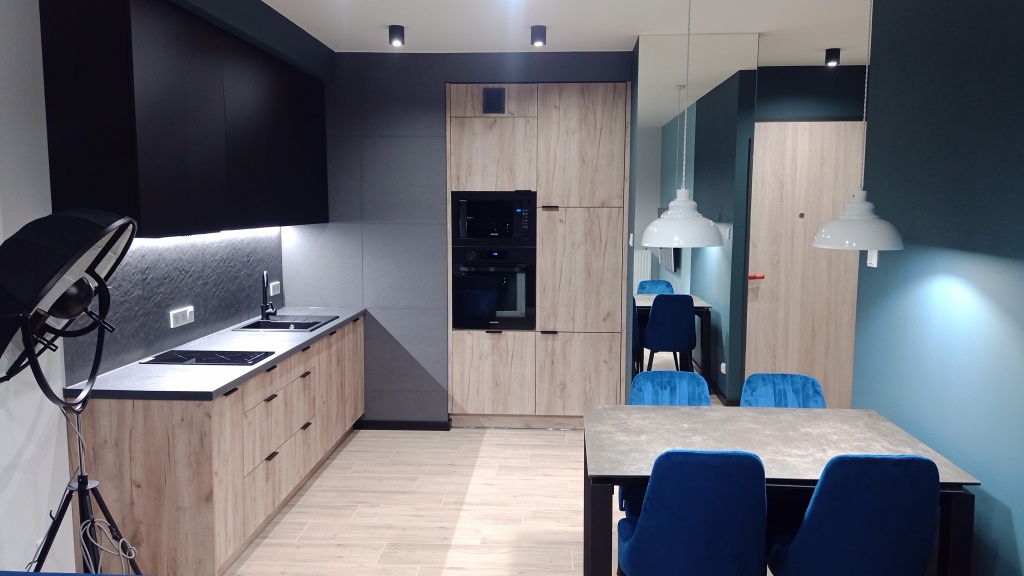 Kompleksowe wykończenie nowego mieszkania wg projektu – wykończenie łazienki, zmiany instalacja elektryczna, zmiany instalacji wod/kan, wykonanie całościowe remontu, szpachlowanie, malowanie, położenie apseli podłogowych, listw przypodłogowych, wykonanie mebli kuchennych, zabudów w pokoju i łazience, montaż sprzętu AGD, sprzątanie końcowe. Inwestor przyjechał i się wprowadził.